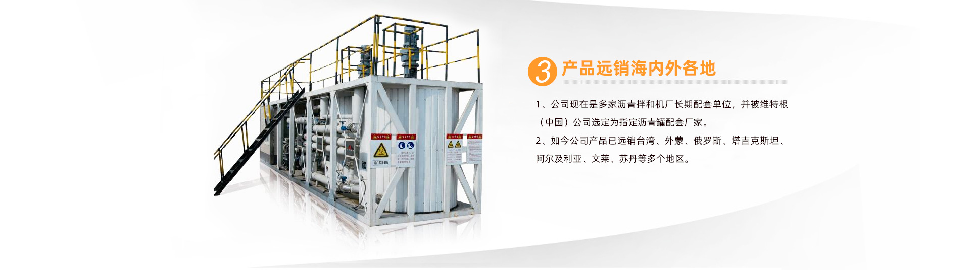 經(jīng)多年的努力,在行業(yè)內(nèi)已具有知名度及品牌影響力,獲得多家業(yè)內(nèi)企業(yè)的認可,公司現(xiàn)在是多家瀝青拌和機廠長期配套單位,并被維特根(中國)公司選定為指定瀝青罐配套廠家。如今公司產(chǎn)品已遠銷臺灣、外蒙、俄羅斯、塔吉克斯坦、阿爾及利亞、文萊、蘇丹等多個地區(qū)。 ...... 【查看詳情】